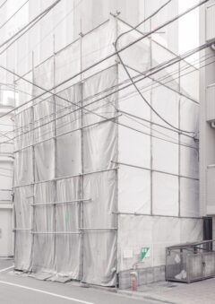 • 狭小地での施工: 隣家との隙間が数十センチという現場では、メッシュシートでは防ぎきれない物理的な接触や粉塵の侵入が懸念されます。こうした場所こそ、しっかりとした剛性のある養生パネルが真価を発揮します。